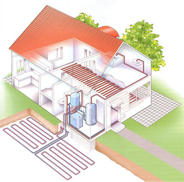 Wärmequelle Erdreich mit Erdreichkollektor In Tiefen von 1,20 bis 1,50 m bleibt die Erde auch an kalten Tagen warm genug, um Wärmepumpen wirtschaftlich betreiben zu können. Voraussetzung ist allerdings, dass ein entsprechend großes Grundstück zur Verfügung steht, um ein Rohrsystem zu verlegen, dass die Erdreichwärme aufnimmt. Die Entzugsleistung des Kollektors liegt zwischen 10 bis 15 W/m2 bei trockenem, sandigem Boden und bis zu 40 W/m2 bei Grundwasser führendem Boden. Durch die Rohre fließt ein umweltfreundliches Solegemisch, das nicht einfrieren kann und die aufgenommene Wärme zum Verdampfer der Wärmepumpe leitet. Als Faustregel gilt, man braucht zwei bis dreimal soviel Erdreichfläche wie die zu beheizende Fläche. Wenn Sie über ein genügend großes Grundstück verfügen, haben Sie eine unerschöpfliche Energiereserve und die idealen Voraussetzungen für eine SoIe/Wasser-Wärmepumpe.
